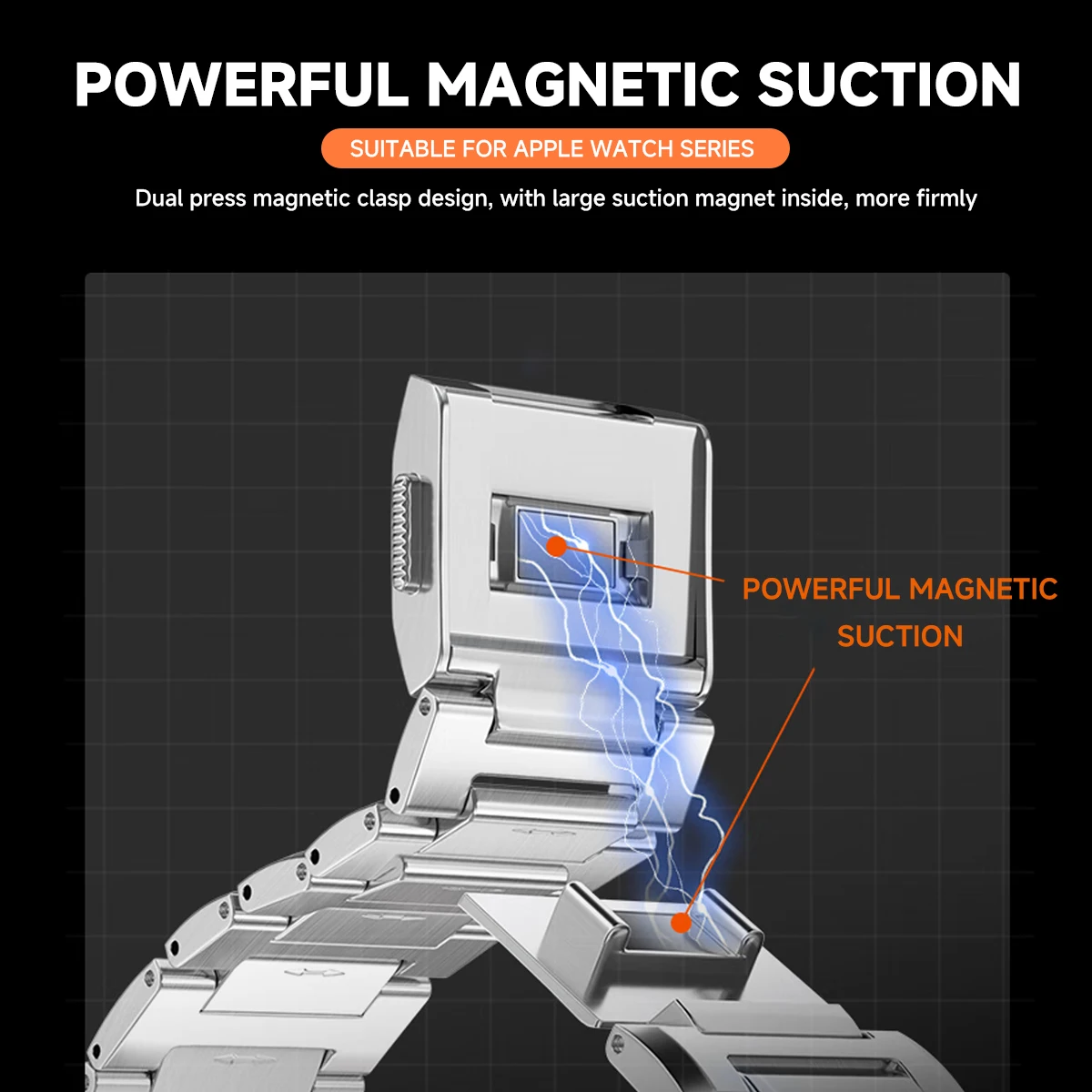 Refine your look with this Apple Watch Band, crafted with precision-engineered mecha lugs attached to a premium stainless steel band. It’s an everyday essential that promises to elevate your Apple Watch to luxury status.