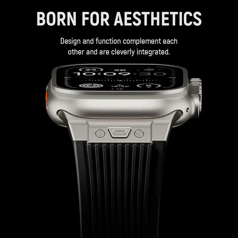 Refine your look with this Apple Watch Band, the ultimate upgrade that brings together our premium streamlined silicone band with a sturdy titanium clasp. It’s an everyday essential that promises to elevate your Apple Watch to luxury status.